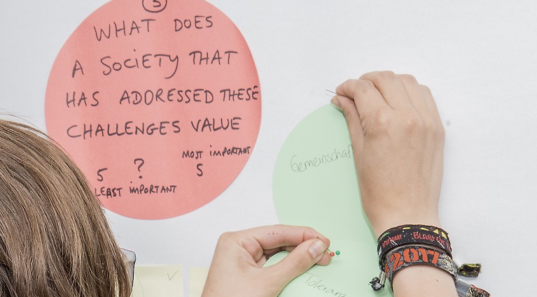 Am Beispiel ihrer Algen-Forschung faszinierte Julia Lohmann mit ihren Strategien zum Wandel von Werten. Sie erläuterte ihre co-spekulative Designmethode für gemeinschaftliche, praxisbasierte Designforschung auf einer ethisch nachhaltigen Wertebasis. Wie wird aus dem Design-Autoren ein Vermittler-Aktivist? Sie erarbeitete mit den Teilnehmerinnen und Teilnehmern deren persönliche Wertvorstellungen. Viele fühlten sich berührt und angesprochen im Sinne eines Anstoßes für ihr persönliches Leben und eine neue Perspektive im Umgang mit Werten. Durch die Stuttgarter Veranstaltung lernten Lohmann und de Bastion sich und die Gemeinsamkeit ihrer Ideen des kollaborativen Designs kennen. Sie verabredeten spontan weiteren Austausch und gemeinsame Projekte auf der Schiene Helsinki, Berlin und Afrika.