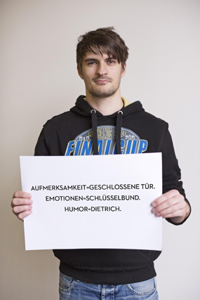 „… die Augen anderer Menschen durch eine mutige Botschaft zu öffnen oder etwas zu verwenden was nicht nur provoziert, sondern zum Denken anregt. Design ist mutig, wenn es über eine ungewöhnliche Gestaltung hinausgeht und zum Mut eines Designers als mitdenkendem Akteur wird.“